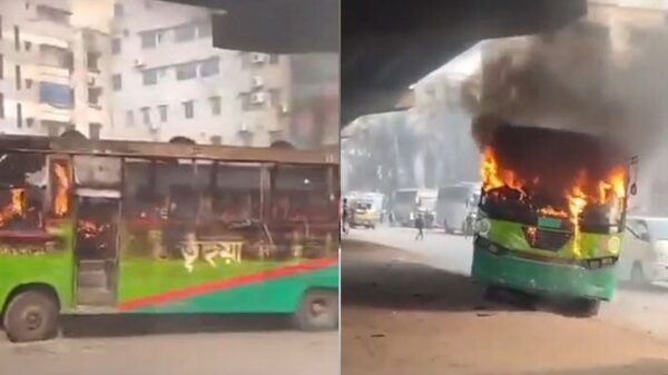রাজধানীর উত্তরায় ভূঁইয়া পরিবহনের বাসে আগুন