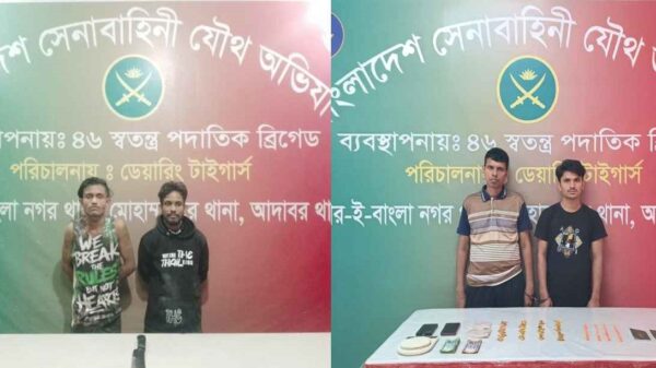 রাজধানীতে দেশীয় অস্ত্র ও মাদকসহ গ্রেফতার ৪ সেনা অভিযানে